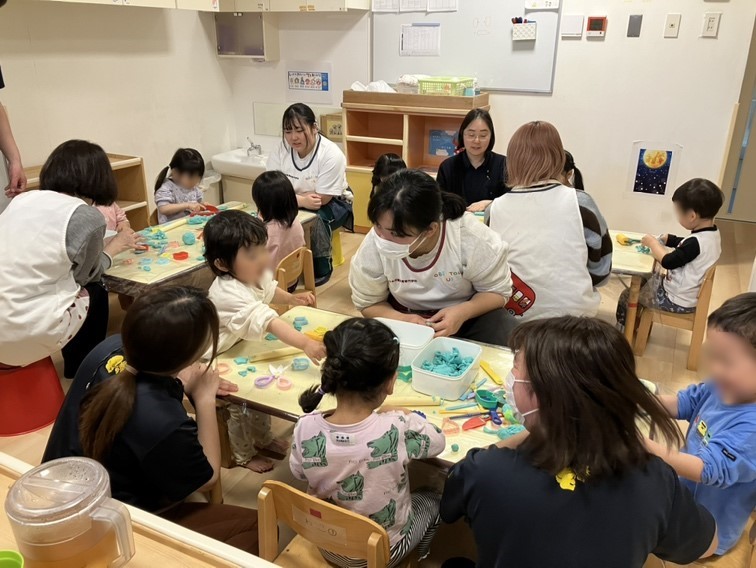 粘土遊びでは、「先生、見て!」と嬉しそうに作品を見せたり、「はさみ使えるようになったんだよ」と成長を伝える子どもたちに、参加者の皆さんが丁寧に耳を傾け優しく応じている姿もとても素敵でした。